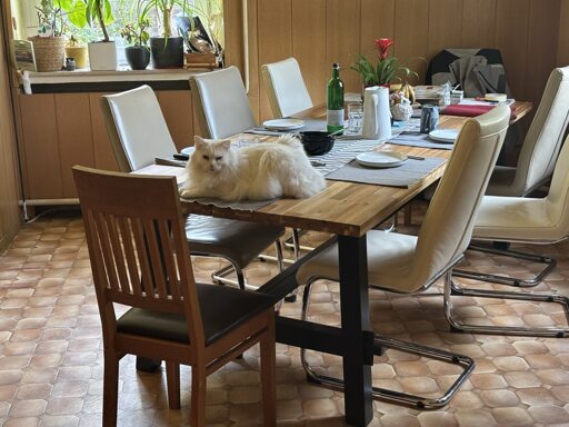 I do this silly thing where I hold my cat in front of me (with her face facing me) and I open my mouth wide and be like “hey you look delicous, can I take a bite?”, like I’m pretending to be a predator in the wild trying to eat her.