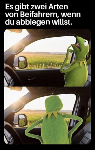 minus-squareLocalhorst86@feddit.orglinkfedilinkarrow-up48·3 months agoF: “kommt rechts ein Auto?” B: “Nein” Stille B: “aber ein LKW”