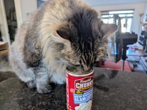 I appreciate your concern, but I just let him bite/lick it for the photo op. But I do agree that actually feeding him full portions chowder or crackers would be very bad. I feel my gatos much healthier proper cat food. The photos are just silly. 😹📸
