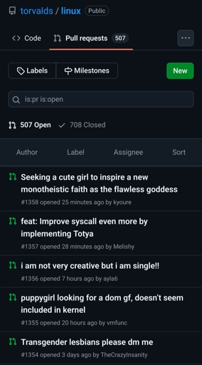 But I’m pretty sure Github is not the main place to develop the Linux kernel. I believe they have their own git servers and GH is only a mirror, so maybe PRs from GH are ignored altogether? IDK