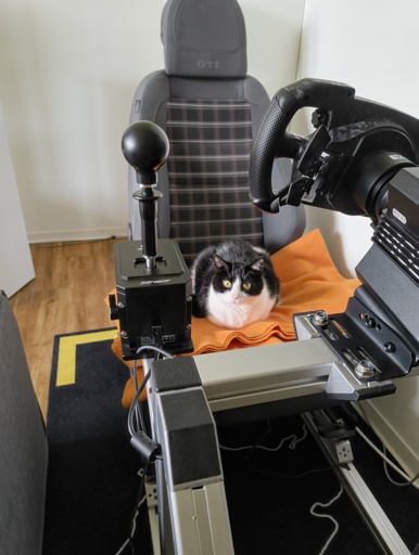 My cats won’t go anywhere near my wheel-and-pedals computer since the wheel surprised them with its “power on calibration”, where it quite noisily suddenly spins itself all the way left and all the way right.