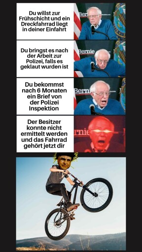 Das hat die Polizei auch gesagt, es dann aber doch angenommen. Ich bin davon ausgegangen, dass das Dirtbike gestohlen wurden ist.