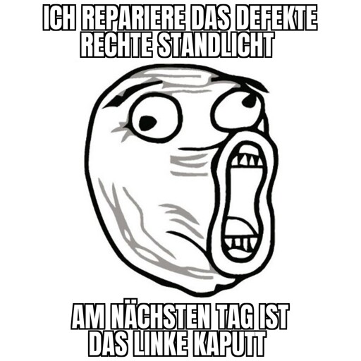 Geht mir mit dem Abblendlicht auch immer so. Einmal hatte ich besonderes Glück - da waren die Birnen links und rechts ZEITGLEICH durchgebrannt 😊