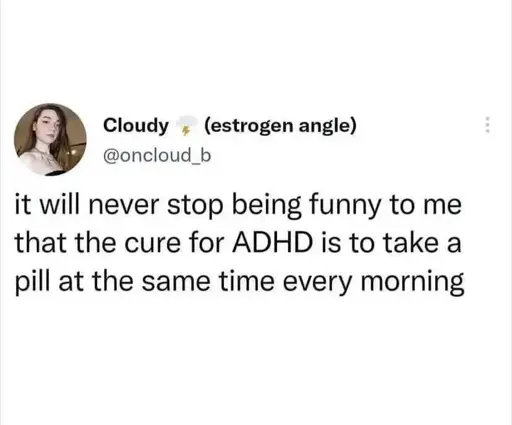 And add the fact that it’s nearly impossible to get regularly due to what is now obviously intentional shortages and the strict controls combined with PBMs restricting the ability to shop around for places with it in stock. So you can’t set up a regular reminder to take it or even actually take it regularly even with a reminder.