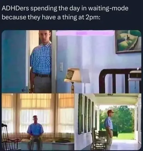 Stamets@lemmy.dbzer0.com to ADHD memes@lemmy.dbzer0.comEnglish · 2 months agoEarly morning appointments are bestlemmy.dbzer0.comimagemessage-square37fedilinkarrow-up1577arrow-down14