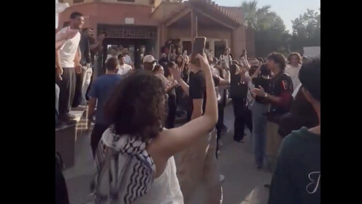 Video footage of AUC’s campus shows hundreds of young, diverse Egyptians swarming the campus’s grounds and halls in protest against Kurtzer’s arrival. Many students are wearing Palestinian keffiyehs and waving the Palestinian flag.