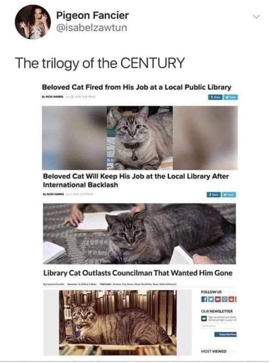 The full story is bonkers. The CIA (Cat Illustriousness Ascendancy) planted Browser into the library’s hierarchy to get people use to a cat being part of an organization.* On June 14, 2016, Councillor Elzie Clements of White Settlement tried to remove Browser from the Library. Clements had the democratic votes to support the removal of Browser. The vote was 2 to 1 to remove Browser. Clements had the votes to remove Browser.