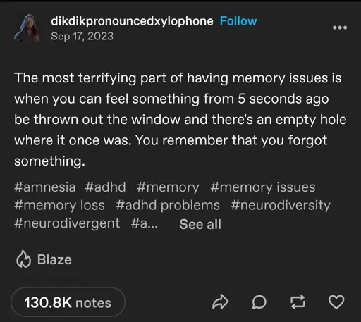 I notice it most when I’m trying to debug software and keep forgetting what I’m looking for.