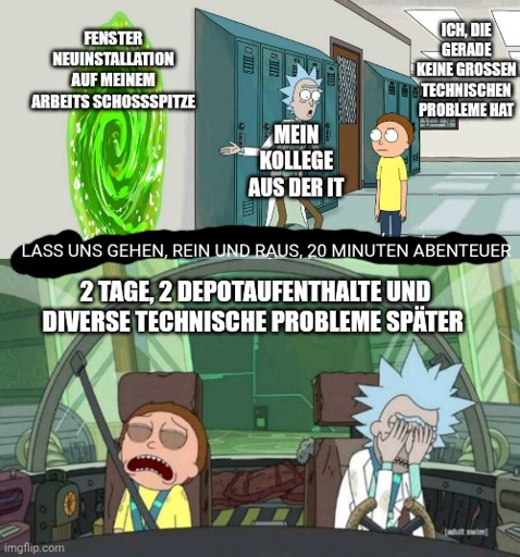This was me, only it was “Installing Linux on my work issued first-gen Intel Mac and somehow hoping IT doesn’t notice”