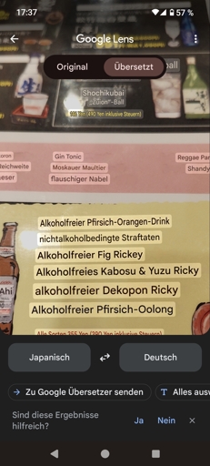 ​Und dann bin ich da und benutze mein Handy, um die bereits übersetzte Speisekarte ins Englische zu übersetzen, und ich weiß nicht, welcher Schritt mehr verhunzt hat.