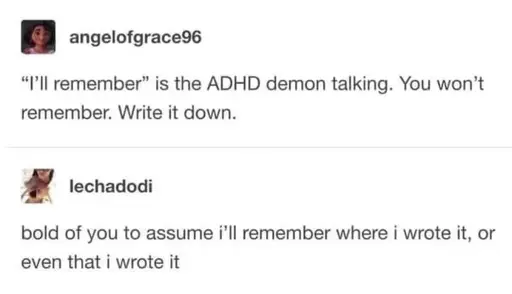 Acting on any of these memories is the challenge. The executive disfunction is the crippling part.