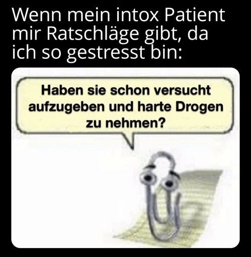 Wie, Patient tot? Aber ich habe hier doch schon 50ml Morphium aufgezogen. Na dann, ab in den Restmüllcontainer zwinker.