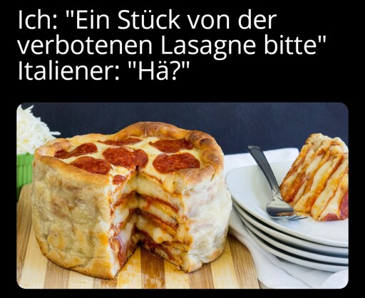 minus-squareEheran@lemmy.worldlinkfedilinkarrow-up4·22 days agoIst das denn lecker? Pizza ist dünn damit alles voller röstaromen usw. ist, hier ist fast nichts außen. Innen wird alles pappig sein. Ich bin sehr skeptisch.
