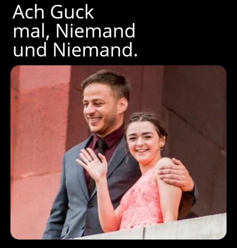 Der Mann war auch Schauspieler in Spiel der Thröne. Die Figur, die er gespielt hat, war ein namenloser Auftragskiller aus einer Art Sekte, deren Mitglieder alle keine Namen tragen. Die Figur von der Schauspielerin tritt später ebenfalls der Sekte bei und wird damit auch Niemand.