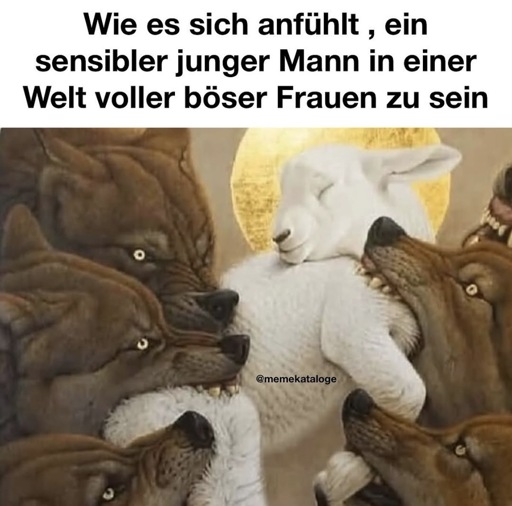 Mhmm… die Wölfe beißen nicht richtig zu, das Schaf grinst verträumt… Das sieht doch alles einvernehmlich aus. Was immer schwimmt dein Boot.