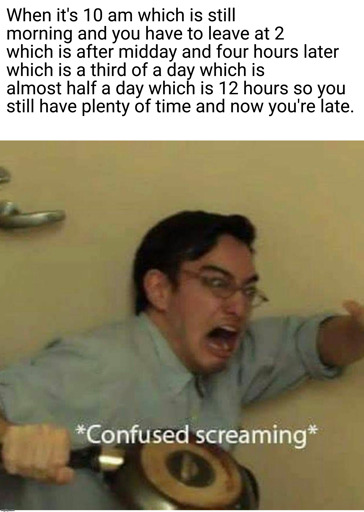 minus-squareBjörn@swg-empire.deOPlinkfedilinkEnglisharrow-up1·6 days agoYours inspired me because for me it’s more of the opposite. I overestimate time.