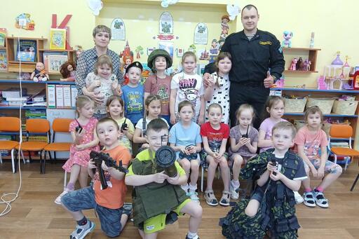 In some cities, these junior cadet groups are created with a view to incorporating them into military schools. In Syktyvkar, kindergarten No. 112 has set up a special group for future police officers. In the Kursk region, near the border with Ukraine, which in summer 2024 was partially occupied by Kyiv’s forces, children in a pre-school are automatically placed in the “border guards” class of a neighboring school. This class is run by a veteran of the “special military operation.”