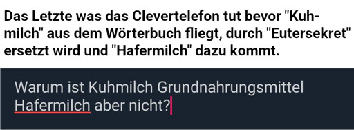 Was ist dieser Trend das man nicht veganen Lebensmitteln einfach neue abstoßende Namen gibt? Also ja ist nicht falsch aber ich kann Gemüse auch als “aufbereitete Wurmscheiße” bezeichnen oder Salz als “Natriumchlorid” aber das ist halt einfach nur erschwerend für die Konversation .__.