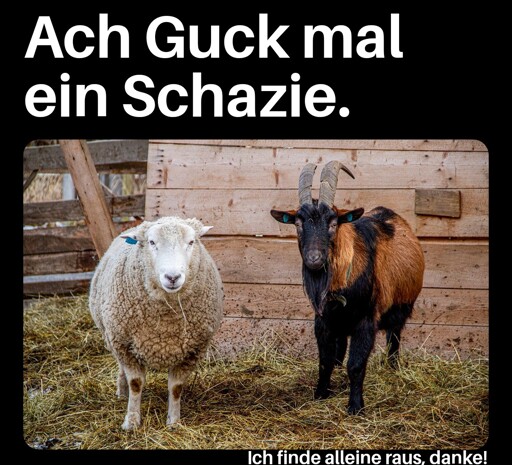 Es gibt Kreuzungen zwischen Schafen und Ziegen. Leider war der Entdecker dieses Tiers weder ein Zuhausi noch ein Maimaier, deswegen heißt es “Schiege”.