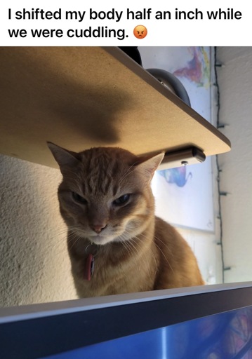 minus-squareWhiskyTangoFoxtrot@lemmy.worldlinkfedilinkarrow-up14·2 months agoThe cat’s angry because you aren’t using metric.