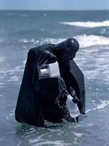 Fake and gay, to get to that water Vader would have to cross a beach full of sand which is rough and coarse and gets everywhere!
