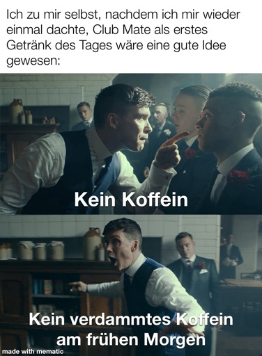 Aber ich kenn‘s auch, wenn ich morgens Kaffee trinke krieg ich davon Herzrasen und Angstzustände. Koffein plus die ganzen körpereigenen Wachmachchemikalien sind da einfach zuviel.