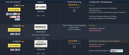 Mich hat es schon ein paar Mal in den Fingern gejuckt zu schauen, wie genau der Link von Geizhals, idealo,… Zu den Shops aussieht. Mit einer Browserextension oder ggf. einem Userscript sollte sich dann ja hoffentlich Query-Parameter, Referrer, Cookie,… anpassen lassen, dass man immer die richtigennPreise bekommen sollte LOL