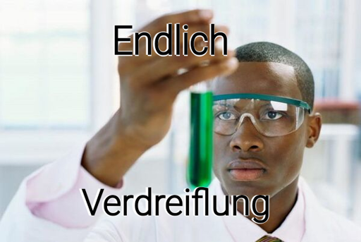 Wissenschaftler hält Reagenzglas: Endlich, Verdreiflung