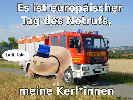 Im oberen Teil des Bilds steht “Es ist europäischer Tag des Notrufs,” im unteren Teil steht “meine Kerl*innen”