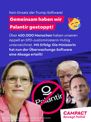 Wir haben’s geschafft: Der bundesweite Einsatz der US-Überwachungssoftware Palantir ist vom Tisch! 🥳