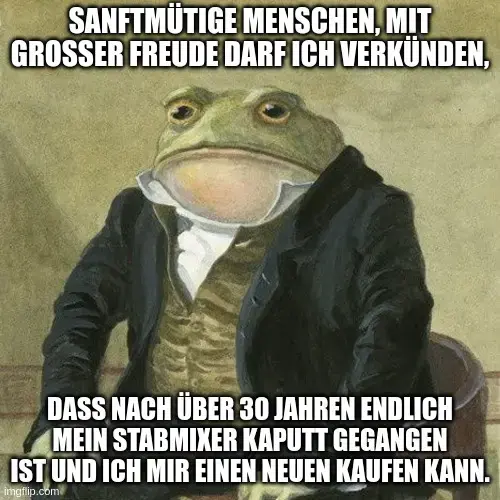 War das ein Krups? Ich habe einen von meiner Oma, der gleichzeitig auch ein Handmixer ist. Zum Glück ist da auch der Stabmixansatz kaputt - allerdings habe ich jetzt zwei Geräte statt eines, was auch doof ist.