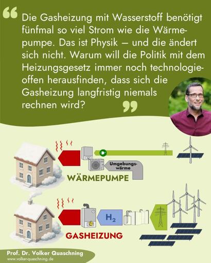 Liegt aber nicht an der Ineffizienz des Wasserstoffs sondern den Wundern der Wärmepumpe.