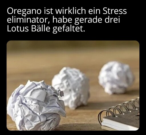 It’s a total shit post. Usually you would say origami is a stress relief. So I said oregano and just show three garbage balls claiming their be lotus balls…