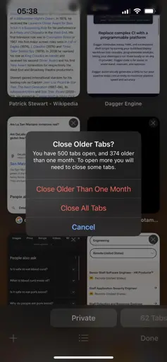 Currently at 666 (nice) tabs on my phone… I’ve gone through a few times closing some but apparently not enough lol