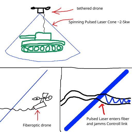 edit2: why not just put the laser on the tank? fry the drones around you directly instead of hoping you cut the comms in the fiber optic lines