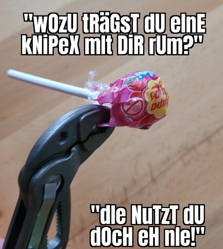ja stimmt, könnte auch jede andere zange sein. aber ich hab ne knipex
