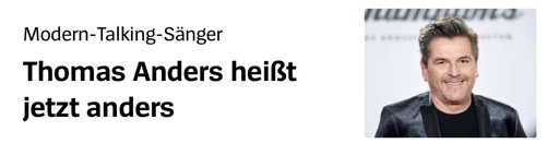Weil er den Namen Thomas Anders überall verwendet und das z.B. bei Flugbuchungen immer wieder Probleme verursacht hat und er sogar verdächtigt wurde, seine eigene Kreditkarte geklaut zu haben, hat er jetzt seinen bürgerlichen Namen an den Künstlernamen angepasst.Also heißt Bernd Weidung jetzt Anders. Ok.