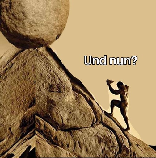 (Anspielung auf einen Essay von Albert Camus, der darin argumentiert, dass die Welt absurd ist, wir aber durch Hinnehmen und anschließende Revolte gegen die Absurdität eine Herrschaft über unser eigenes Leben erreichen können. In Anbetracht dessen, wie absurd die Aufgabe des Sisyphos ist, findet Camus also, dass Sisyphos glücklich sein müsse, seines eigenen Schicksals Schöpfer zu sein. Ob ich ihm das uneingeschränkt abnehme sei dahingestellt.)