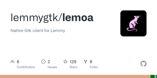 arrow-up10arrow-down1external-linkLemoa - A Gtk client for Lemmyplus-squaregithub.comBnyro@programming.dev to Linux@lemmy.ml · 2 years agomessage-square0fedilink