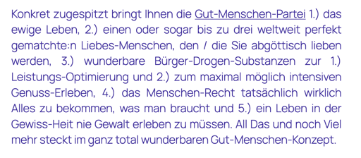 Ist korrekt. Persönlich mag ich alle Religionen bis zu dem Moment, in dem sie versuchen, ihre Probleme zu meinem zu machen.